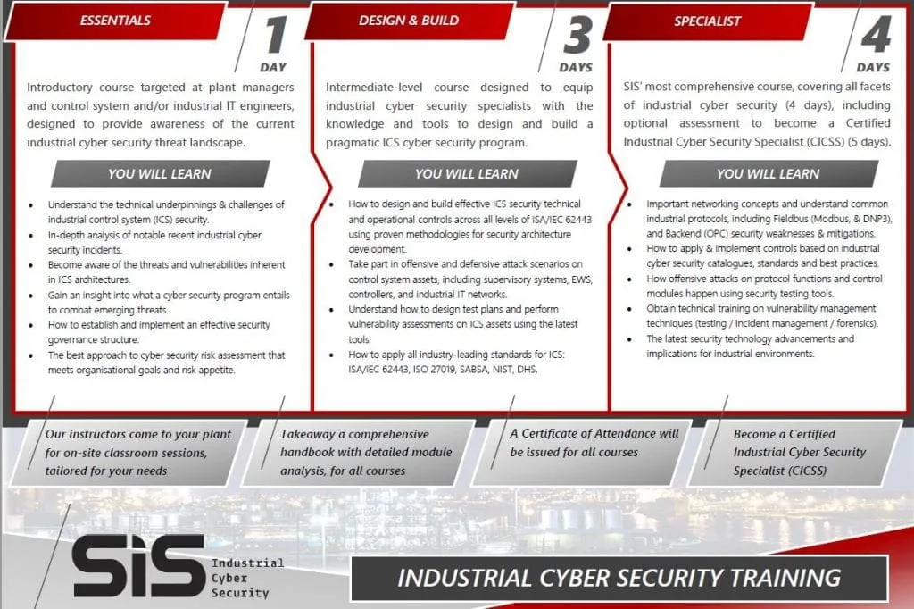 Intermediate-level course designed to equip industrial cyber security specialists with the knowledge and tools to design and build a pragmatic ICS cyber security program.
